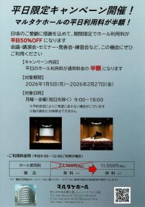 平日のホール利用料が通常料金の 半額 になります